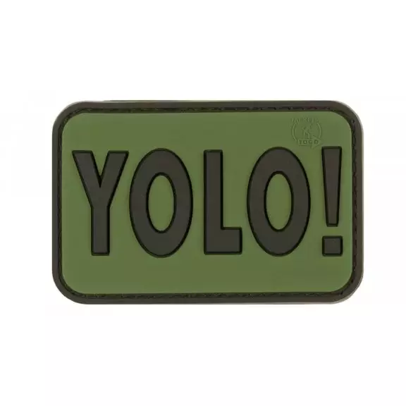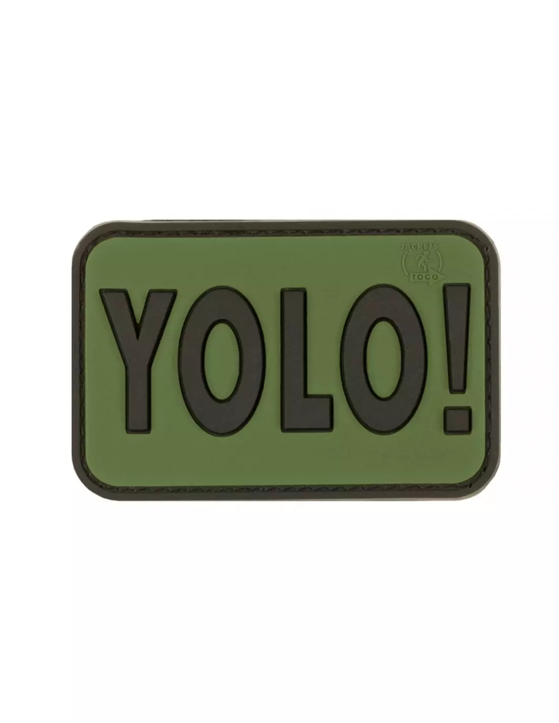 JTG®-Gummipatch mit YOLO-Klettverschluss (You Only Live Once). Auf der Rückseite befindet sich ein Klettbereich, der auf den Patch genäht wird. Dadurch kann es mit Klettverschluss an jeder schlaufenförmigen Oberfläche befestigt werden.