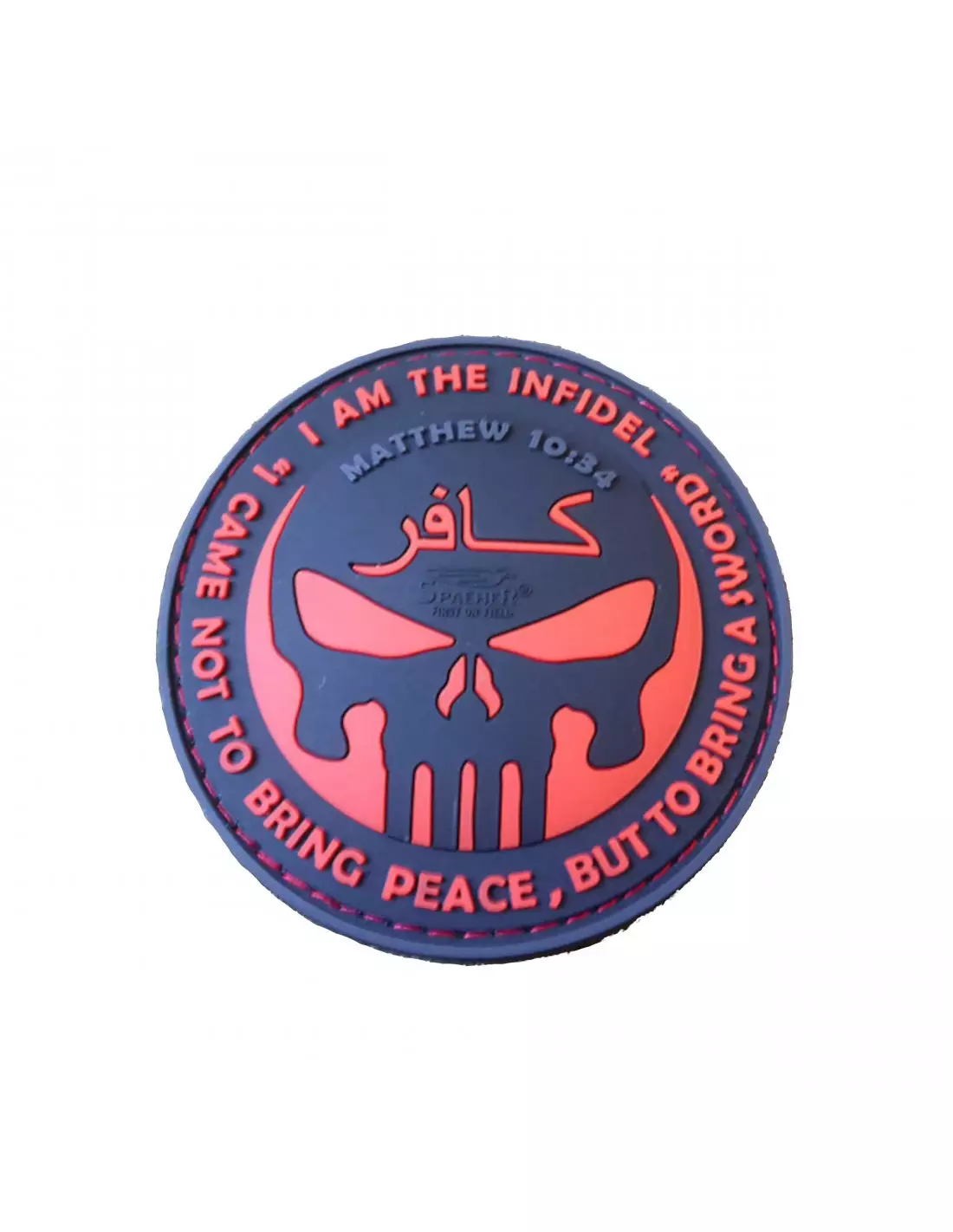 JTG®-Gummipatch mit The Infidel Punisher 3D-Klettverschluss. Auf der Rückseite befindet sich ein Klettbereich, der auf den Patch genäht wird. Dadurch kann es mit Klettverschluss an jeder schlaufenförmigen Oberfläche befestigt werden.