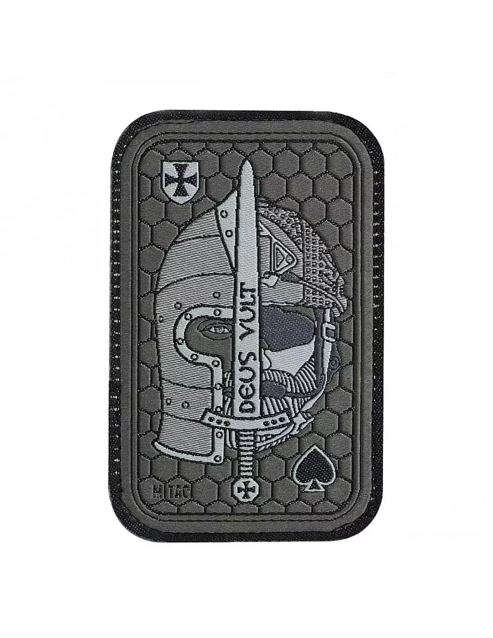 Deus Vult Jacquard-Patch von M-Tac. Die Inschrift „Deus Vult“ (kann aus dem Lateinischen übersetzt werden mit „Gott will es“; auf Französisch: Dieu le veut) – es war der Aufruf des Volkes bei der Ausrufung des ersten Kreuzzugs durch Papst Urban II.
