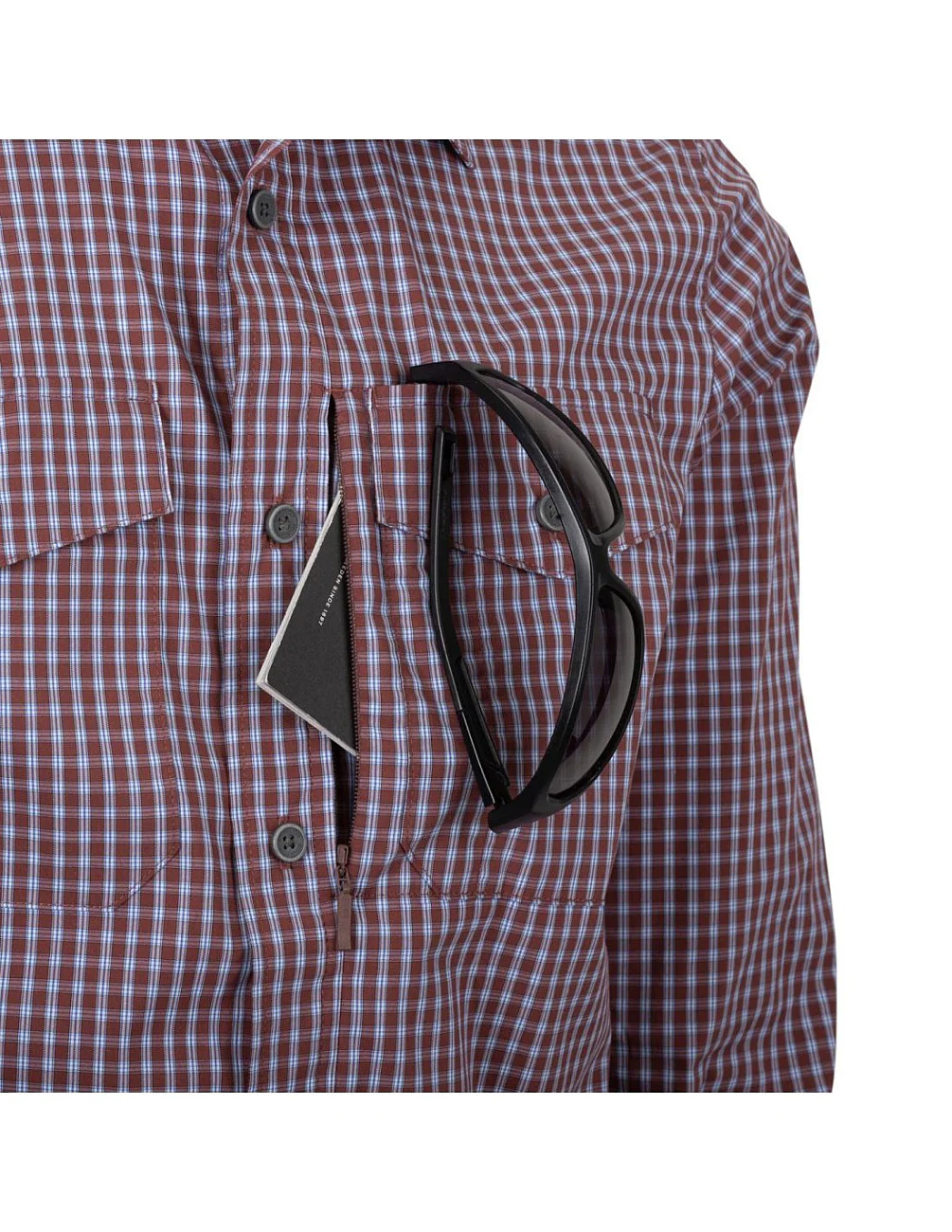 COVERT CONCEALED CARRY Hemd von Helikon-Tex. Das klassische Gitter erlaubt es Ihnen, sich unter die Menge zu mischen, während das leichte, atmungsaktive Material für Komfort bei städtischen Aktivitäten sorgt. Zwei geknöpfte Brusttaschen verleihen dem Covert Concealed Carry Shirt einen eher klassischen, verdächtigen Look. Eine verdeckte tasche mit Reissverschluss ermöglicht es Ihnen, wichtige Gegenstände zu verstecken, und ein spezielles Material am unteren Ende des Hemdes ermöglicht es Ihnen, Ihre Brille zu reinigen. Was bei diesem Hemd jedoch am meisten überrascht, ist die Art und Weise, wie es befestigt ist. Scheinbar klassische, gewöhnliche Knöpfe entpuppen sich als träge, die den sofortigen Zugriff auf Waffen, Magazine usw. ermöglichen.
