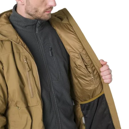 Die Winter Yukon Jacke von Helikon-Tex ist eine robuste Wahl für Wintertouren, Bushcraft und harte Outdoor-Bedingungen. Die Climashield Apex 67 g/m² Isolierung sorgt selbst im nassen Zustand für Wärme, während das Duracanvas-Außenmaterial äußerst widerstandsfähig ist, gewachst werden kann und sich beim Arbeiten im Lager sowie im Gelände hervorragend bewährt. Die Jacke bietet eine Kombination aus Schutz, Haltbarkeit und Wärmekomfort und funktioniert zuverlässig bei niedrigen Temperaturen und rauen Umgebungen.