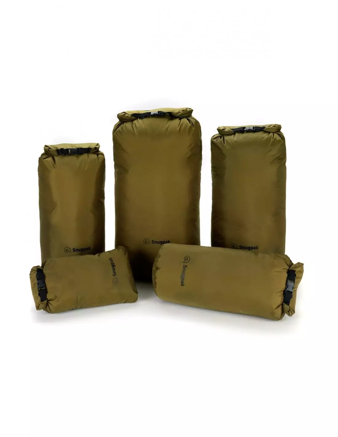 Dri-sak from Snugpak® is a durable and waterproof bag that will keep your gear dry and protected from water, even during tough expeditions and unfavorable weather conditions. There's nothing worse than discovering wet or damaged equipment in harsh conditions. The Dri-Sak is made from lightweight yet tough nylon fabric. The roll-top closure enables air to be released outside, so the bag takes up as little space as possible in your luggage.