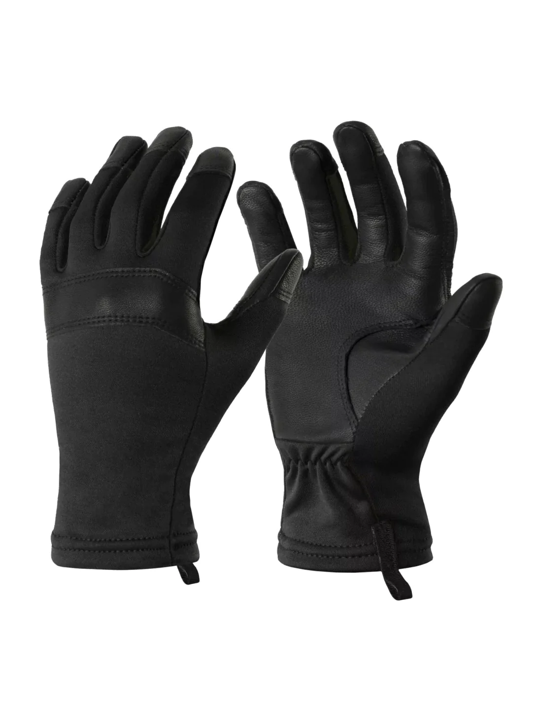 Patrol Gloves by Helikon-Tex are modern gloves designed for military-style operations. Made from a combination of flexible synthetic material and natural leather, they offer both comfort and functionality. The anatomical cut, extending past the wrist, together with a shirt cuff, provides secure protection and high wearing comfort. Compatible with touchscreen devices, these gloves allow you to operate devices without removing them. Leather inserts on the palm, fingertips, and along the knuckles enhance protection and reinforce the glove structure. Properly maintained, the natural leather will remain durable and attractive for years. Elastic rubber on the outside of the wrist ensures a snug fit, while small stitched loops allow you to attach the gloves to a carabiner or belt. Please note that due to the natural origin of the leather, individual pieces may vary in texture and appearance.