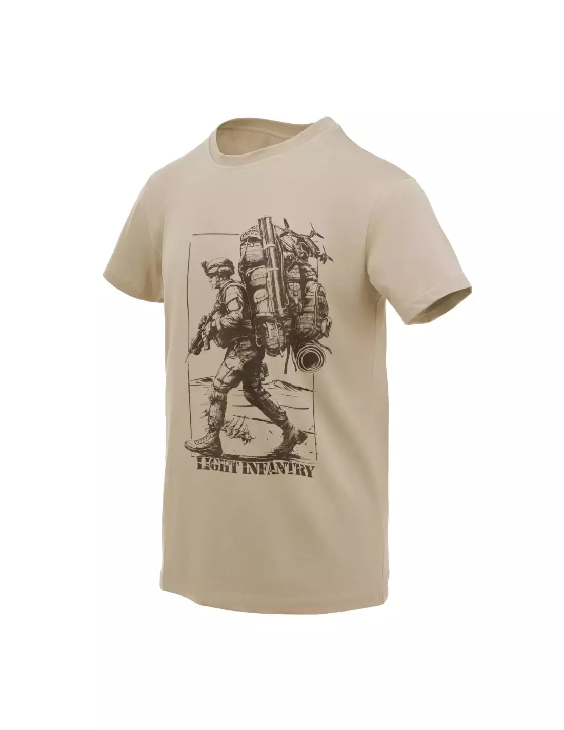 Helikon-Tex "Light Infantry" T-shirt with soldier graphic. Comfortable cotton tee inspired by the Light Infantry competition and classic military style.