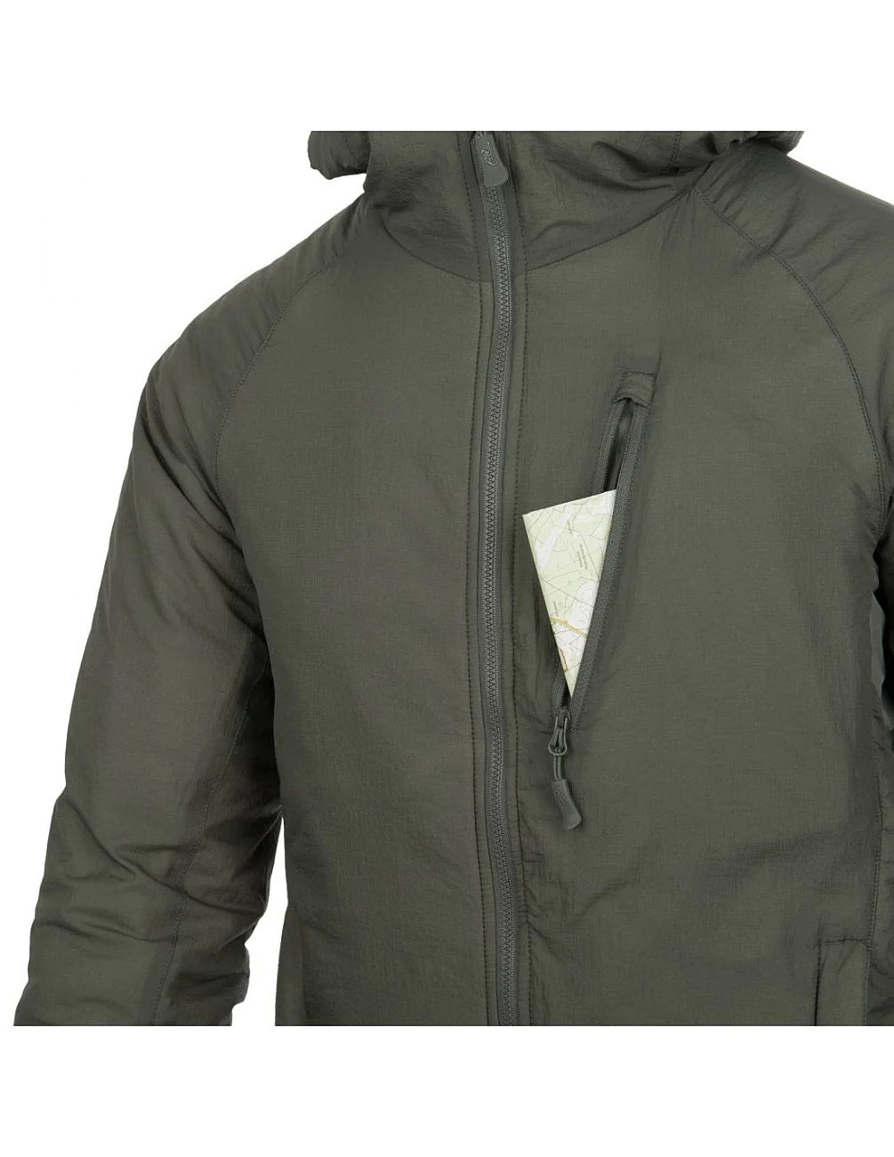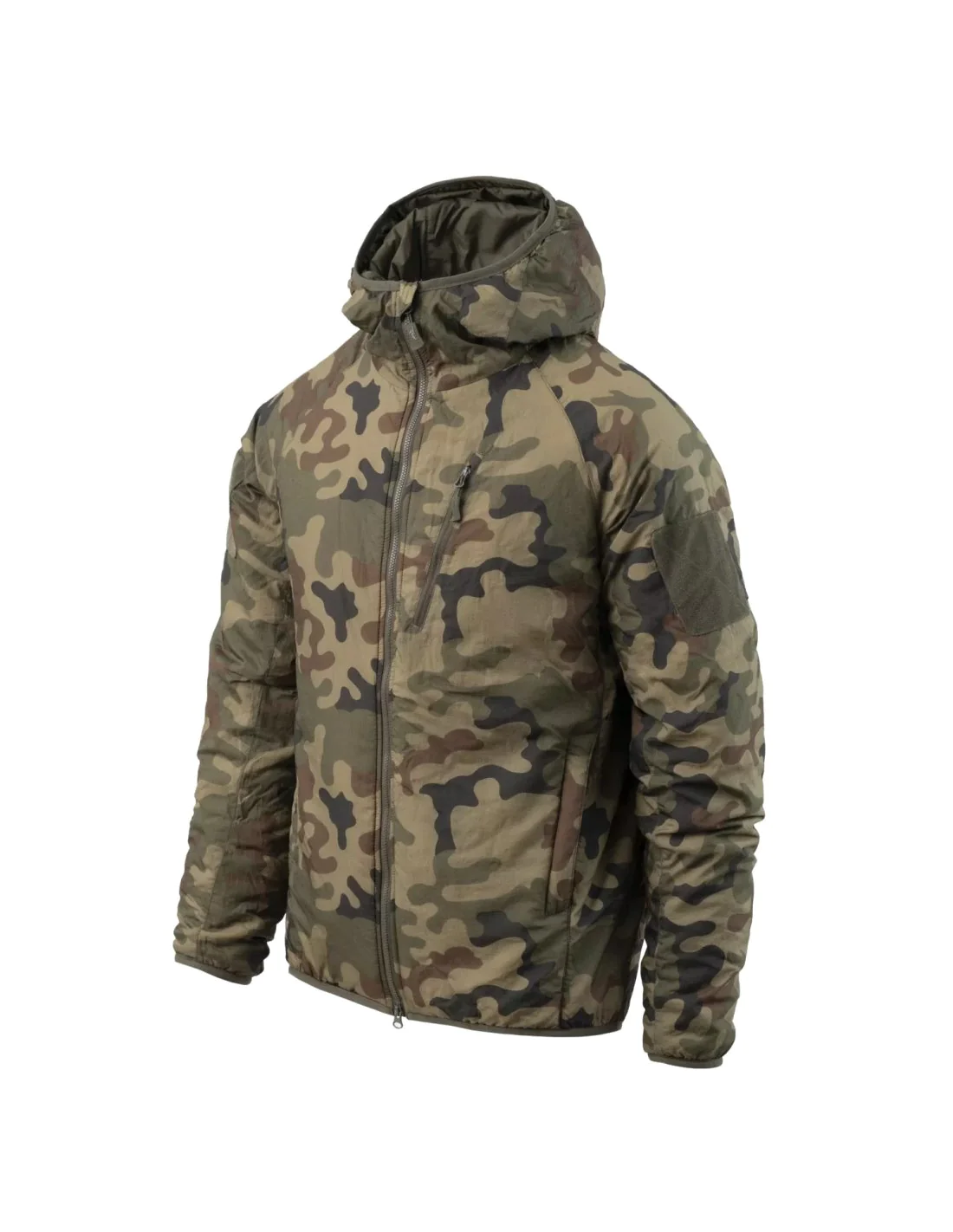 The packable Wolfhound Hoodie jacket by Helikon is a version equipped with a hood for a warming Wolfhound jacket. Thanks to thermal insulation, Climashield® Apex ™ is perfect for colder days. The outer layer made of WindPack® Nylon® provides optimal protection against cold or wind. Additional VersaStretch inserts under the armpits allow for better ventilation. KU-WLH-NL-01