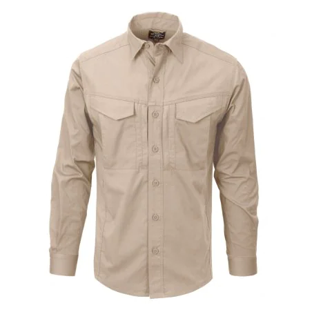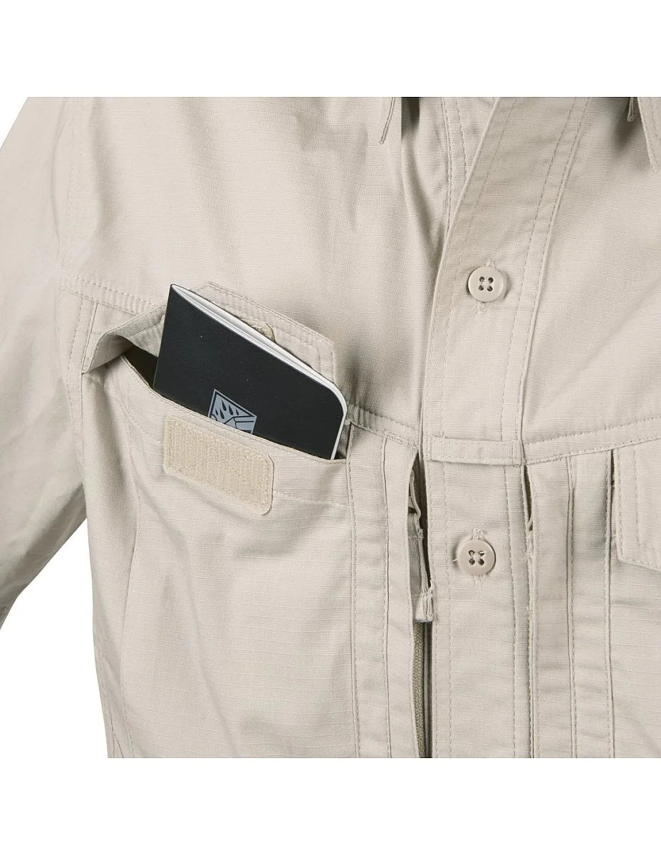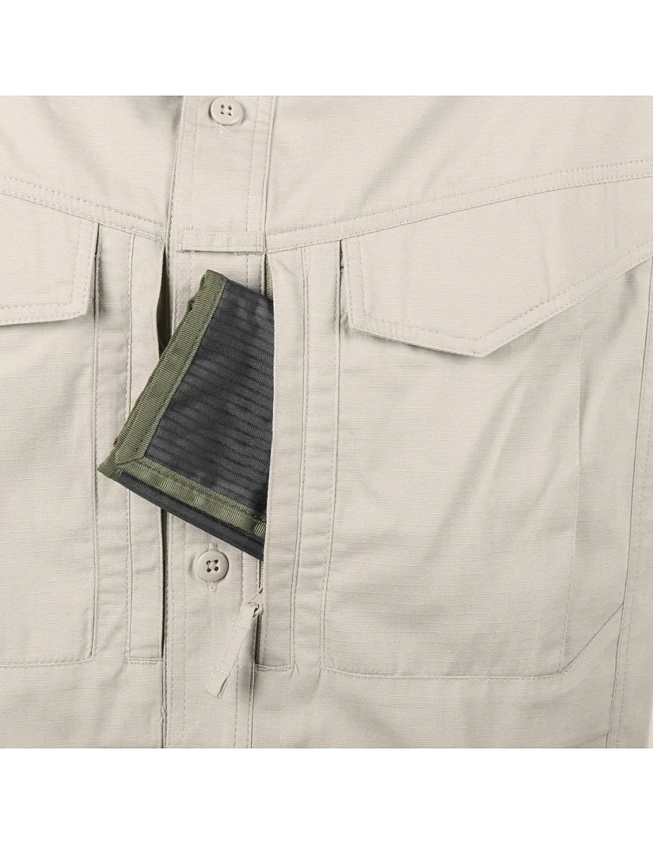 Komfortowa koszula Defender Mk2 Helikon-Tex jest nowszą wersją klasycznego modelu marki Helikon z linii miejskiej. Ma lekko luźny, anatomiczny krój niekrępujący ruchów, mankiety zapinane na guziki. Estetyczna koszula z długim rękawem Helikon uszyta została z najnowszej polibawełny typu CVC RipStop, zapewniającej wysoką wytrzymałość i odpowiedni przepływ powietrza. Tkanina dodatkowo pozwala na szybkie wysychanie. Pod pachami znajdują się niewielkie panele wentylacyjne. Kołnierzyk z dodatkowym usztywnieniem zapobiega rolowaniu się. Szlufka na okulary została wszyta na wysokości piersi na pasie z guzikami. Estetyczna koszula linii Urban posiada klasyczne kieszenie piersiowe zapinane na klapy z rzepami pod lekkim skosem, a także kieszenie napoleońskie z niezawodnymi suwakami YKK. Całość stanowi stylową i funkcjonalną cześć garderoby dobrze łączącą się z niskoprofilowymi kamizelkami taktycznymi czy kaburami IWB.