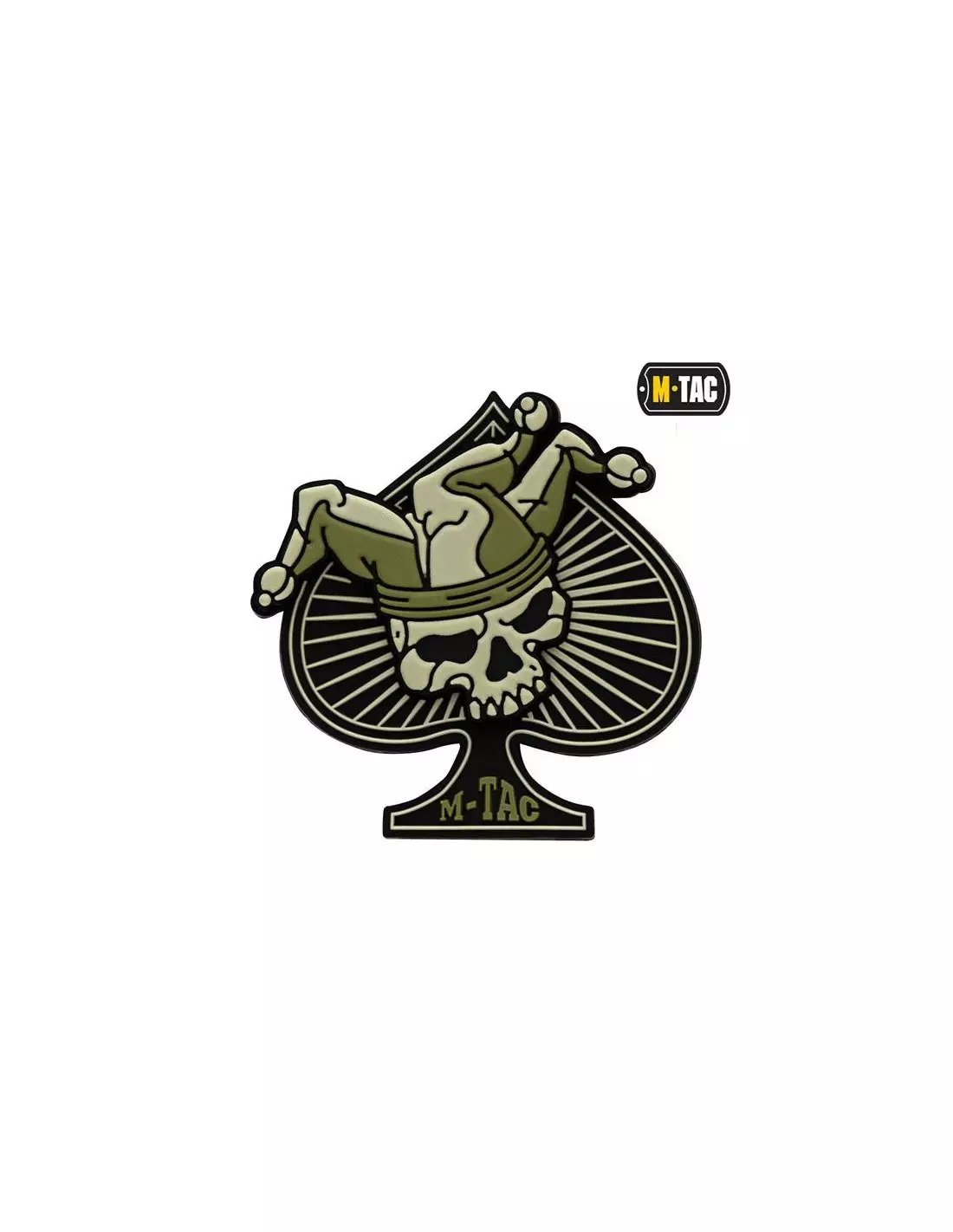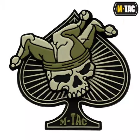 Naszywka M-Tac Ace of Spades 3D PVC, mocuje się do czapki z daszkiem lub plecaka na velcro – rzep (na samej naszywce na odwrocie naszyty jest rzep). Karta As pik jest przeciwieństwem znaku pokoju.