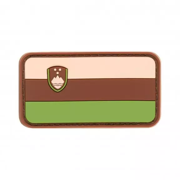 Gumowa naszywka JTG® na rzep Slovenia Flag 3D. Z tyłu znajduje się powierzchnia na rzep, która jest przyszyta do naszywki. Dzięki temu można go przymocować do dowolnej pętelkowej powierzchni zapinanej na rzep.