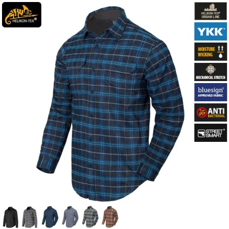 Lekka i oddychająca koszula Greyman firmy Helikon wyglądem nie wyróżnia się wśród innych koszul. Dzięki temu może być zarówno ubiorem na co dzień, jak i do działań incognito. Tkanina z oznaczeniem Bluesign Approved Fabric jest wysokiej jakości, szybko odprowadza wilgoć. Posiada właściwości antybakteryjne, jest lekko rozciągliwa we wszystkich kierunkach. Wzór w ponadczasową kratę w kilku wariantach kolorystycznych. Klasyczny krój, zapinana na guziki. Lekko usztywniany kołnierzyk doskonale się prezentuje. Rękawy z mankietami regulowanymi guzikami. Taktyczna koszula linii Urban ma dwie standardowe naszywane kieszenie piersiowe z klapką. Lewa posiada dodatkowo wąską szlufkę na okulary. Na cenne przedmioty sprawdzi się ukryta wewnętrzna siatkowa kieszeń na suwak. Również po wewnętrznej stronie koszuli na dolnym rogu znajduje się trójkątna chusteczka do przecierania okularów.
