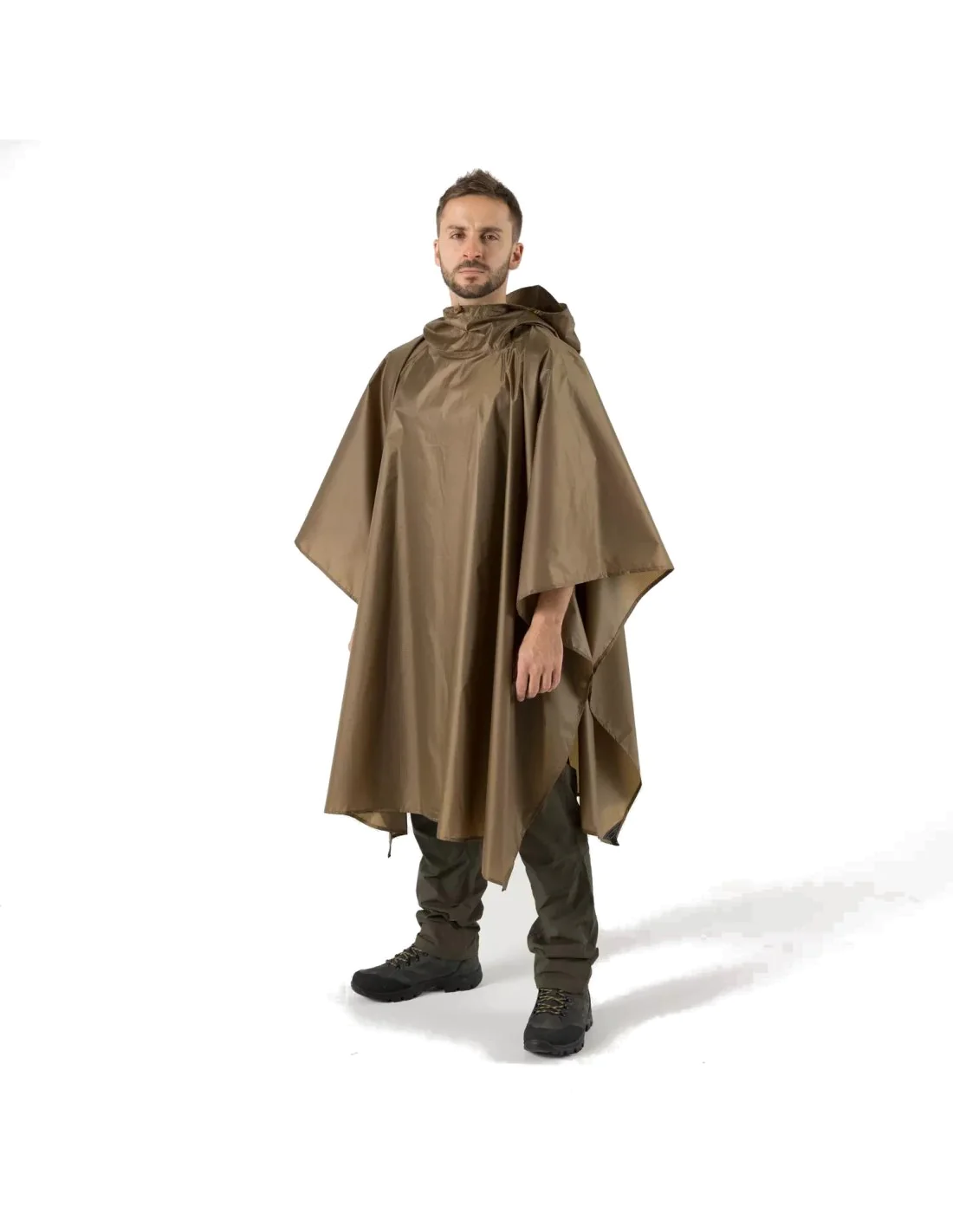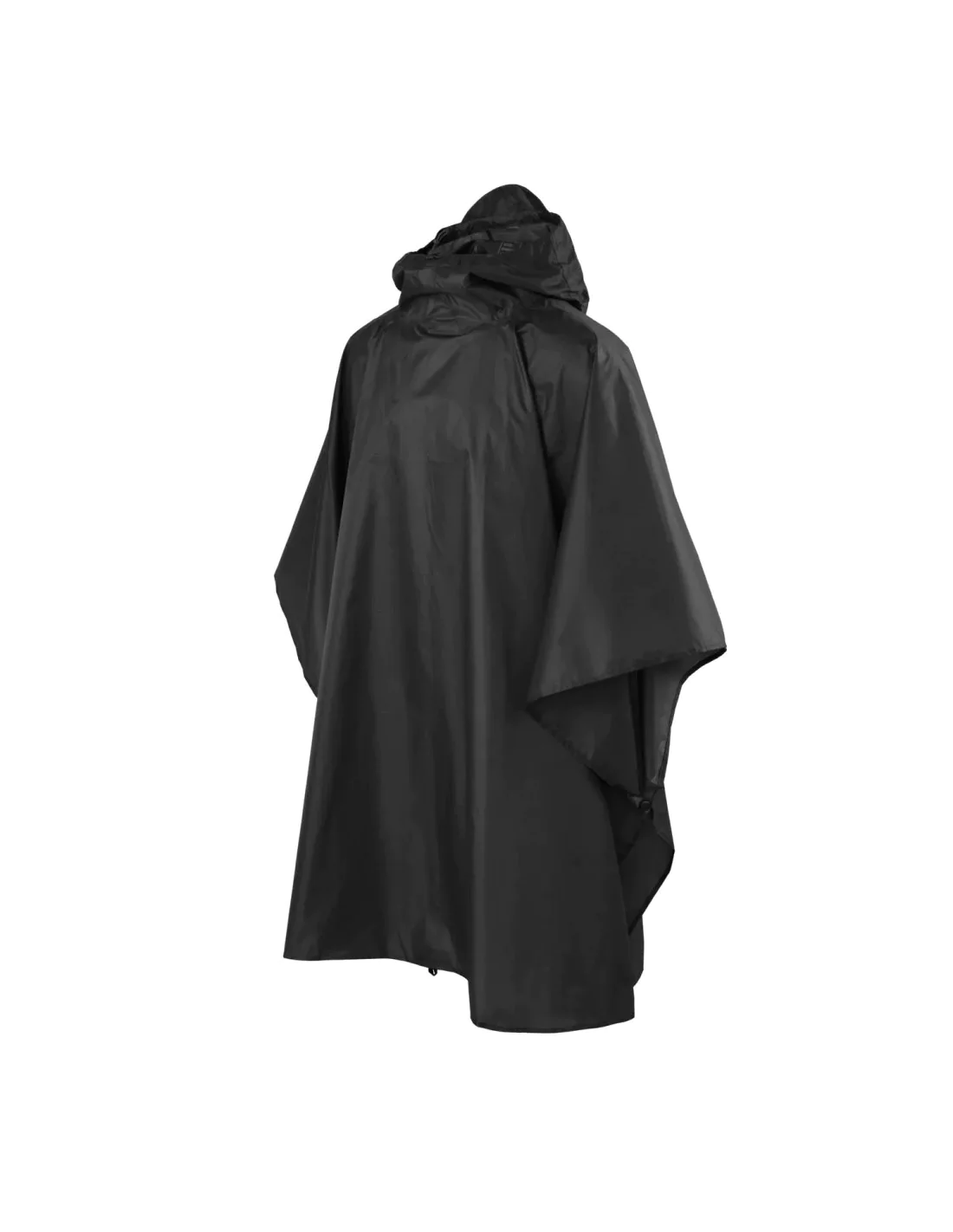 Lightweight Poncho Polyester od Helikon-Tex to lekkie poncho chroniące przed trudnymi warunkami atmosferycznymi, wykonane z trwałego poliestrowego materiału Rip-stop, które może pełnić funkcję peleryny przeciwdeszczowej lub awaryjnego schronienia. Jest to lżejsza i udoskonalona wersja kultowego Poncho U.S. Model, z którego usunięto zbędne elementy, pozostawiając tylko te najbardziej funkcjonalne. Zastąpienie metalowych oczek pętelkami z mocnej taśmy zmniejszyło wagę i gabaryt po spakowaniu, bez utraty wymiaru użytkowego. Poncho posiada dwa zatrzaski pozwalające stworzyć prowizoryczne rękawy, które stabilizują je podczas marszu, a nowy, udoskonalony kaptur z regulacją sznurkiem zapewnia lepsze dopasowanie. Po złożeniu całość można spakować do dołączonego pokrowca, a wszystkie punkty montażowe zostały dodatkowo wzmocnione tkaniną odporną na rozdarcia.